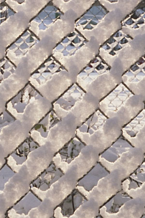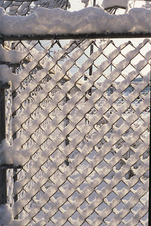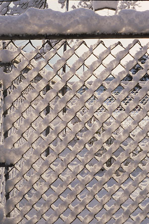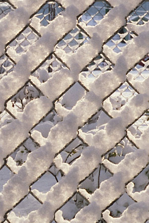 As you can see from the images, I went out on a recent snowy day, and, pursuant to my "policy" of seeking out subjects with spatial complexity and specular and transmissive qualities, found a wonderful snow laden section of chain link fence around a neighbor's yard. It was pretty, and it looked like an ideal "complex" three dimensional subject.